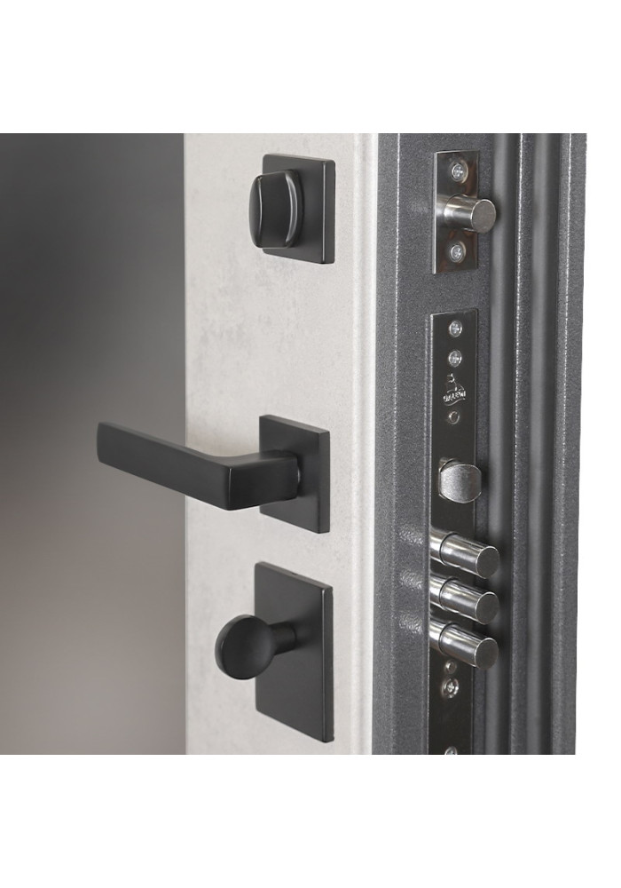 - Фурнитура: Ручка, ночная задвижка, глазок на квадратной розетке (цвет «черный»).